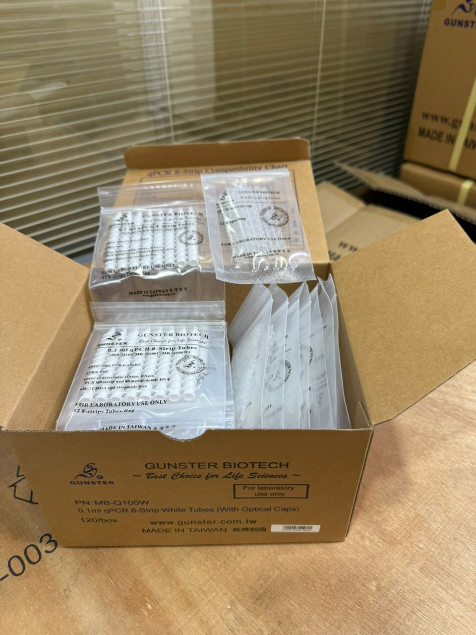 استریپ تیوب 0/1 میلی لیتر 8 تایی، سفید، درب شفاف 120 عددی – مناسب PCR و qPCR